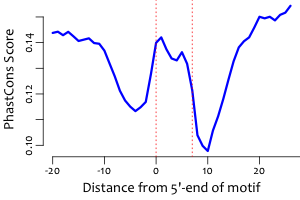 | Average position of motif in targets: | 202.8 +/- 104.0bp |