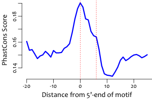 | Average position of motif in targets: | 208.5 +/- 104.3bp |