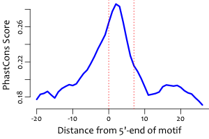 | Average position of motif in targets: | 206.3 +/- 105.0bp |