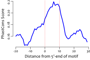 | Average position of motif in targets: | 202.1 +/- 110.3bp |