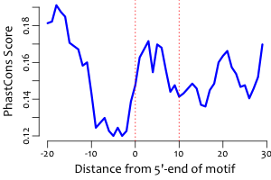 | Average position of motif in targets: | 203.8 +/- 102.2bp |