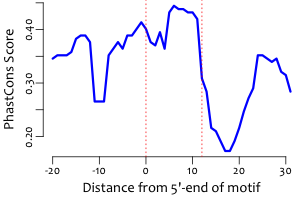 | Average position of motif in targets: | 190.4 +/- 108.5bp |