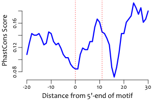 | Average position of motif in targets: | 198.9 +/- 90.5bp |