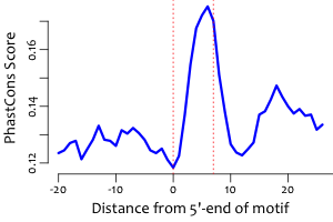 | Average position of motif in targets: | 209.5 +/- 103.3bp |