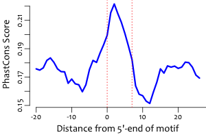 | Average position of motif in targets: | 196.7 +/- 104.6bp |