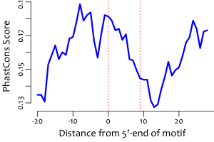 | Average position of motif in targets: | 218.1 +/- 107.3bp |