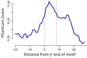 | Average position of motif in targets: | 199.3 +/- 95.1bp |