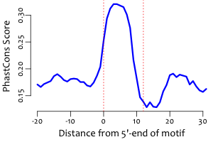 | Average position of motif in targets: | 203.2 +/- 88.2bp |