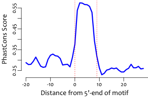| Average position of motif in targets: | 197.5 +/- 64.1bp |