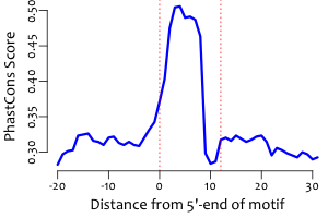 | Average position of motif in targets: | 205.5 +/- 72.3bp |