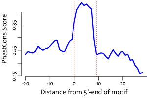 | Average position of motif in targets: | 191.8 +/- 85.3bp |