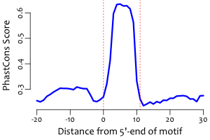 | Average position of motif in targets: | 194.5 +/- 67.1bp |
