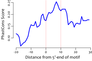 | Average position of motif in targets: | 181.5 +/- 107.8bp |