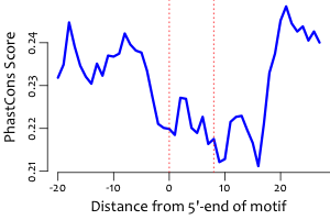 | Average position of motif in background: | 200.1 +/- 120.5bp |