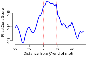 | Average position of motif in targets: | 220.6 +/- 108.8bp |