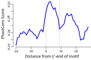 | Average position of motif in targets: | 201.7 +/- 108.5bp |