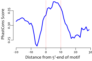 | Average position of motif in targets: | 198.2 +/- 103.8bp |