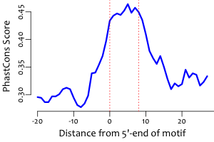 | Average position of motif in targets: | 206.7 +/- 101.2bp |