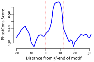 | Average position of motif in targets: | 195.2 +/- 58.4bp |
