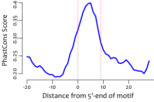 | Average position of motif in targets: | 217.7 +/- 96.1bp |