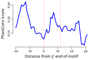 | Average position of motif in targets: | 196.1 +/- 101.2bp |