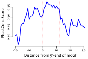 | Average position of motif in targets: | 199.0 +/- 68.0bp |
