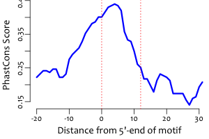 | Average position of motif in targets: | 210.2 +/- 89.1bp |