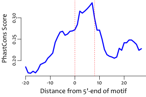 | Average position of motif in targets: | 205.1 +/- 93.2bp |