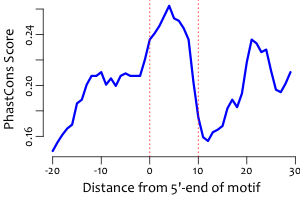 | Average position of motif in targets: | 195.2 +/- 94.4bp |
