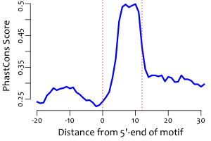 | Average position of motif in targets: | 197.8 +/- 67.6bp |