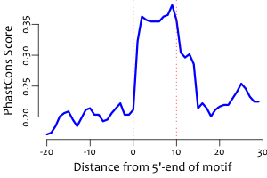 | Average position of motif in targets: | 228.5 +/- 70.2bp |