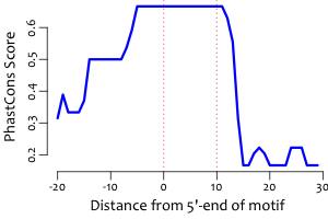 | Average position of motif in targets: | 180.4 +/- 66.2bp |