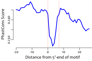 | Average position of motif in targets: | 265.7 +/- 455.2bp |