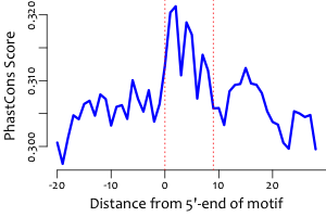 | Average position of motif in targets: | 279.5 +/- 360.2bp |