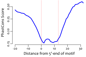 | Average position of motif in targets: | 268.7 +/- 214.5bp |