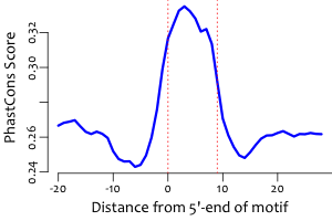 | Average position of motif in targets: | 270.7 +/- 531.2bp |