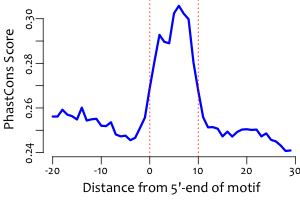 | Average position of motif in targets: | 277.6 +/- 596.1bp |