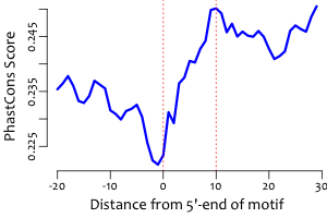 | Average position of motif in targets: | 273.9 +/- 354.9bp |