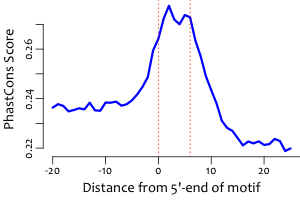 | Average position of motif in targets: | 275.9 +/- 519.8bp |