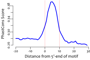 | Average position of motif in targets: | 268.6 +/- 350.6bp |