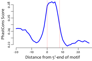 | Average position of motif in targets: | 279.7 +/- 632.6bp |